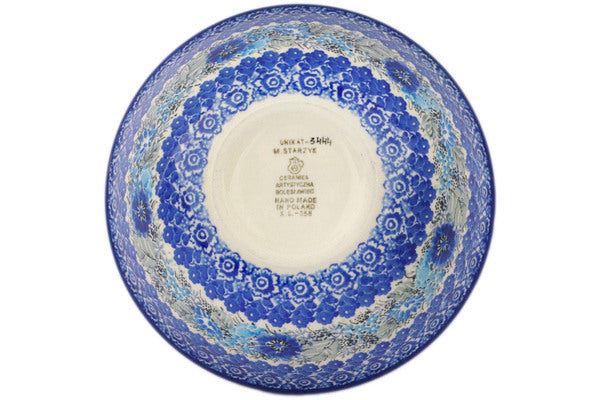 This is a Polish pottery Unikat (Signature) Bowl, which means that it has been hand painted with both sponges and brushes and it is signed by the artist who painted it. Unikat pieces are the most intricate works of art. Larger Unikat items take hours of very careful work to finish.