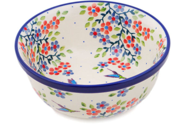 Polish Pottery 6" Bowl Verdant Hummingbird Spring UNIKAT