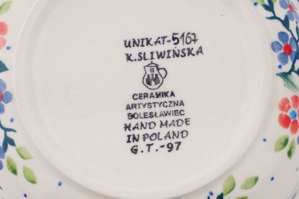 This is a Polish pottery Unikat (Signature) Bowl, which means that it has been hand painted with both sponges and brushes and it is signed by the artist who painted it. Unikat pieces are the most intricate works of art. Larger Unikat items take hours of very careful work to finish.