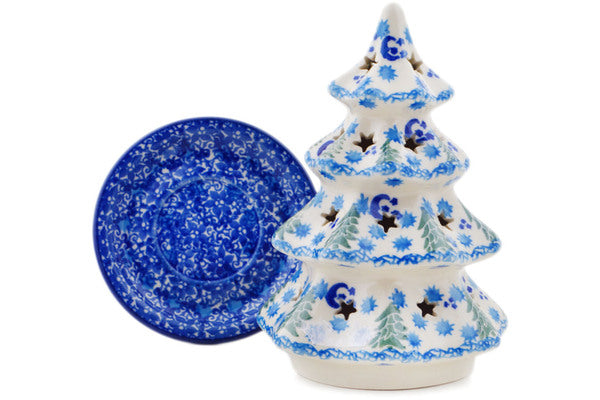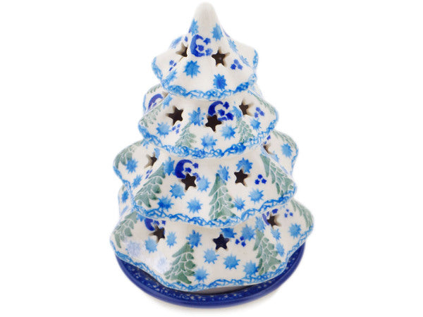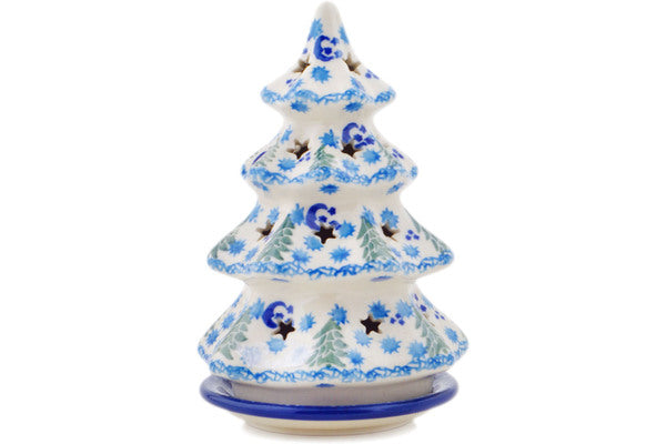 This Polish pottery Christmas Tree Candle Holder is made by Ceramika Artystyczna workshop in Boleslawiec, Poland. Manufacturer item number H5281Q. It is 6" high and measures 4" by 4". The weight of this Christmas Tree Candle Holder is 0.9 lbs. It is part of the Evergreen Night Collection.