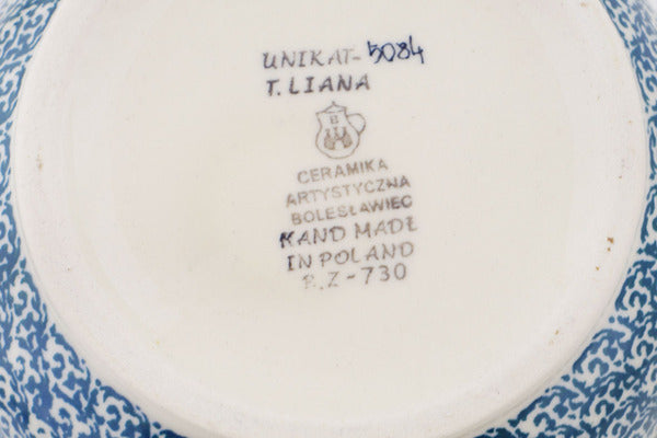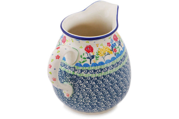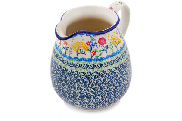 This Polish pottery Pitcher is made by Ceramika Artystyczna workshop in Boleslawiec, Poland. Manufacturer item number H2568Q. It is 6½" high and measures 6¾" by 5". The capacity of this Pitcher is 50.7 oz when filled to rim and it weighs 2.2 lbs. It is part of the Sunday Morning Collection.