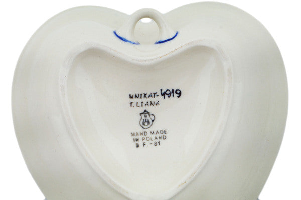 This is a Polish pottery Unikat (Signature) Heart Shaped Bowl, which means that it has been hand painted with both sponges and brushes and it is signed by the artist who painted it. Unikat pieces are the most intricate works of art. Larger Unikat items take hours of very careful work to finish.