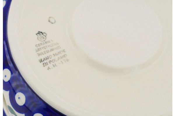 This Polish pottery Heater with Candle Holder is made by Ceramika Artystyczna workshop in Boleslawiec, Poland. Manufacturer item number H9875Q. It is 3" high and measures 6" by 6". The weight of this Heater with Candle Holder is 1.5 lbs. The pattern was designed by artist Maria Ciszewska. It is part of the Bleeding Heart Peacock Collection.