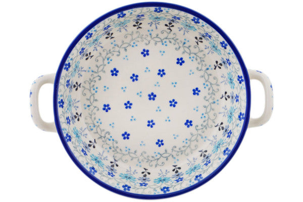 Polish Pottery 6½-inch Round Baker with Handles Baby Blue Garden