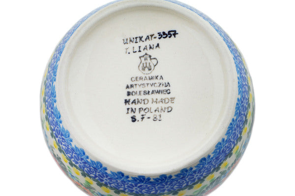 This is a Polish pottery Unikat (Signature) Jar with Lid, which means that it has been hand painted with both sponges and brushes and it is signed by the artist who painted it. Unikat pieces are the most intricate works of art. Larger Unikat items take hours of very careful work to finish.