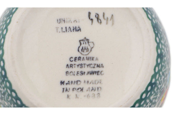 This is a Polish pottery Unikat (Signature) Tumbler, which means that it has been hand painted with both sponges and brushes and it is signed by the artist who painted it. Unikat pieces are the most intricate works of art. Larger Unikat items take hours of very careful work to finish.