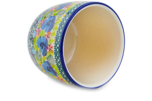 This Polish pottery Tumbler is made by Ceramika Artystyczna workshop in Boleslawiec, Poland. Manufacturer item number H7737O. It is ¼" high and measures 3¼" by 3¼". The capacity of this Tumbler is 6.3 oz when filled to rim and it weighs 0.5 lbs. The pattern was designed by artist Teresa Liana. It is part of the Pretty Pansies Collection.