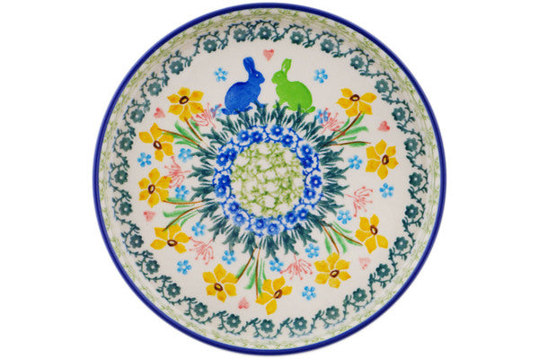 This Polish pottery Platter is made by Ceramika Artystyczna workshop in Boleslawiec, Poland. Manufacturer item number H9036Q. It is ¾" high and measures 6¼" by 6¼". The weight of this Platter is 0.7 lbs. It is part of the Hopping In Love Collection.