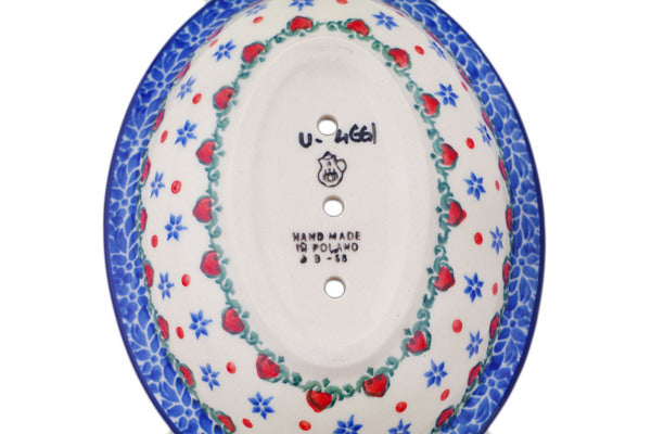 This is a Polish pottery Unikat (Signature) Soap Dish, which means that it has been hand painted with both sponges and brushes and it is signed by the artist who painted it. Unikat pieces are the most intricate works of art. Larger Unikat items take hours of very careful work to finish.