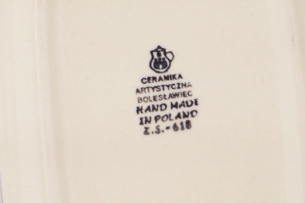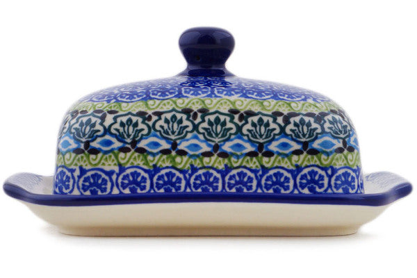This Polish pottery Butter Dish is made by Ceramika Artystyczna workshop in Boleslawiec, Poland. Manufacturer item number H5691Q. It is 3½" high and measures 6¾" by 5". The weight of this Butter Dish is 1.4 lbs. The pattern was designed by artist Maria Starzyk. It is part of the Artistic Boho Collection.