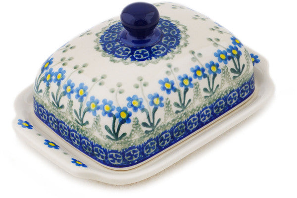 Polish Pottery 7" Butter Dish Blue Daisy Circle