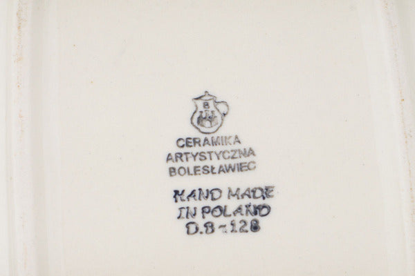 This Polish pottery Butter Dish is made by Ceramika Artystyczna workshop in Boleslawiec, Poland. Manufacturer item number H5079A. It is 3½" high and measures 6¾" by 5". The weight of this Butter Dish is 1.4 lbs. The pattern was designed by artist Jolanta Okraska. It is part of the Blue Daisy Circle Collection.