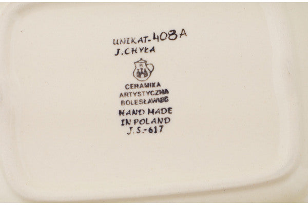 This is a Polish pottery Unikat (Signature) Butter Dish, which means that it has been hand painted with both sponges and brushes and it is signed by the artist who painted it. Unikat pieces are the most intricate works of art. Larger Unikat items take hours of very careful work to finish.