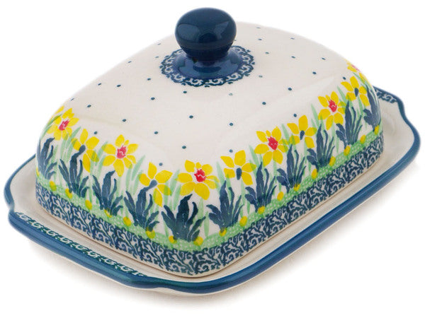 This Polish pottery Butter Dish is made by Ceramika Artystyczna workshop in Boleslawiec, Poland. Manufacturer item number H6486Q. It is 3½" high and measures 6¾" by 5". The weight of this Butter Dish is 1.4 lbs. It is part of the Summer Meadow Collection.