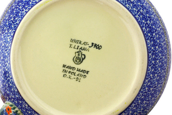 This is a Polish pottery Unikat (Signature) Tea or Coffee Pot, which means that it has been hand painted with both sponges and brushes and it is signed by the artist who painted it. Unikat pieces are the most intricate works of art. Larger Unikat items take hours of very careful work to finish.