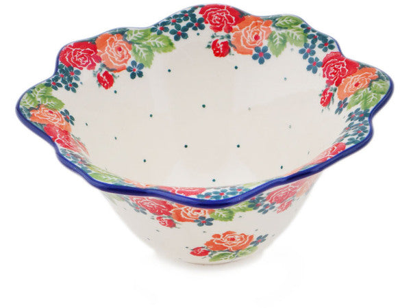 Polish Pottery 7" Fluted Bowl In The Rose Garden