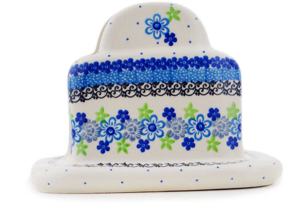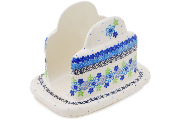 Polish Pottery 7" Napkin Holder Blue And Green Flower Dream
