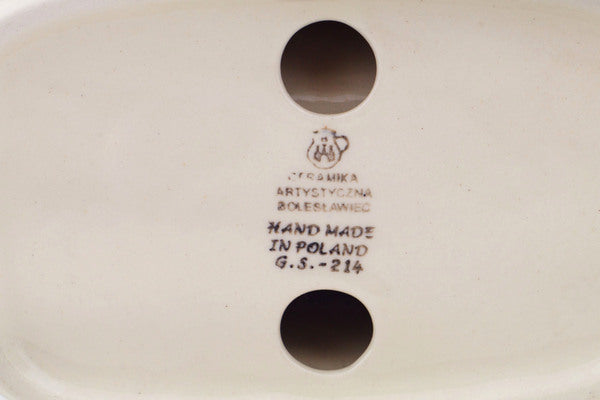 This Polish pottery Napkin Holder is made by Ceramika Artystyczna workshop in Boleslawiec, Poland. Manufacturer item number H5460Q. It is 4¾" high and measures 6¾" by 4½". The weight of this Napkin Holder is 2.0 lbs. The pattern was designed by artist Jolanta Okraska. It is part of the Blue Tulip Collection.