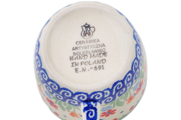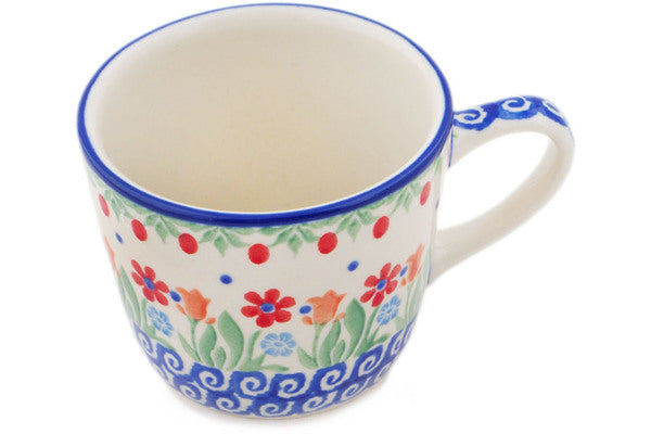 This Polish pottery Mug is made by Ceramika Artystyczna workshop in Boleslawiec, Poland. Manufacturer item number H1587Q. It is 2½" high and measures 4¼" by 3¼". The capacity of this Mug is 6.8 oz when filled to rim and it weighs 4.8 lbs. It is part of the Babcia's Garden Collection.