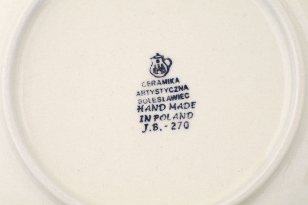 This Polish pottery Plate is made by Ceramika Artystyczna workshop in Boleslawiec, Poland. Manufacturer item number H1457Q. It is 1" high and measures 7" by 7". The weight of this Plate is 0.9 lbs. The pattern was designed by artist Jolanta Okraska. It is part of the Crimson Bells Collection.