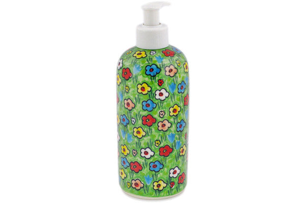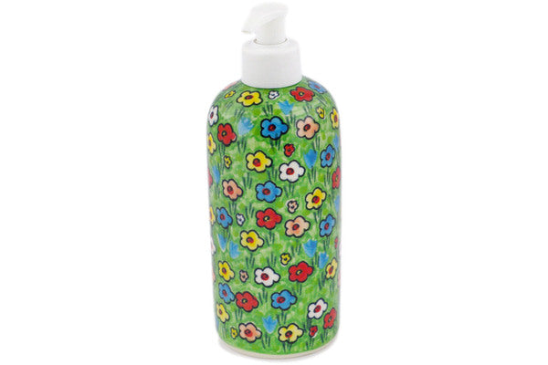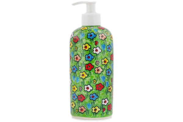 This Polish pottery Soap Dispenser is made by Ceramika Artystyczna workshop in Boleslawiec, Poland. Manufacturer item number H2938R. It is 7¼" high and measures 2¾" by 2¾". The capacity of this Soap Dispenser is 14.2 oz when filled to rim and it weighs 0.7 lbs. It is part of the Whimsical Garden Collection.