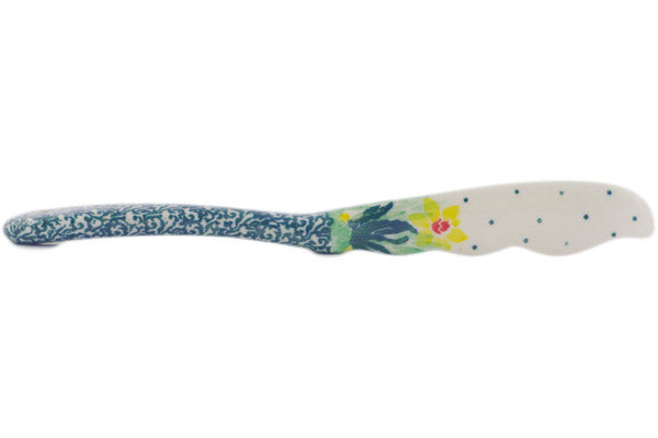 This Polish pottery Spreading Knife is made by Ceramika Artystyczna workshop in Boleslawiec, Poland. Manufacturer item number H6471Q. It is 1" high and measures 7¼" by 1". The weight of this Spreading Knife is 0.1 lbs. It is part of the Summer Meadow Collection.
