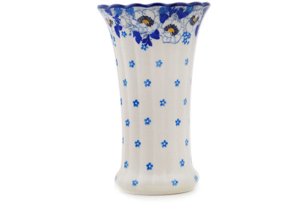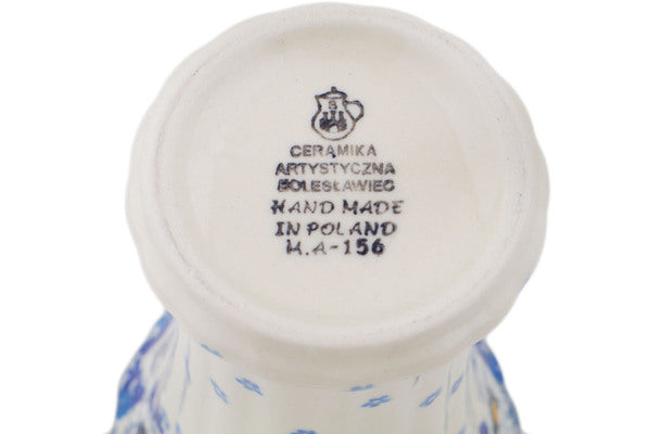 This Polish pottery Vase is made by Ceramika Artystyczna workshop in Boleslawiec, Poland. Manufacturer item number H6088Q. It is 6½" high and measures 4" by 4". The weight of this Vase is 1.0 lbs. It is part of the Blue Spring Collection.