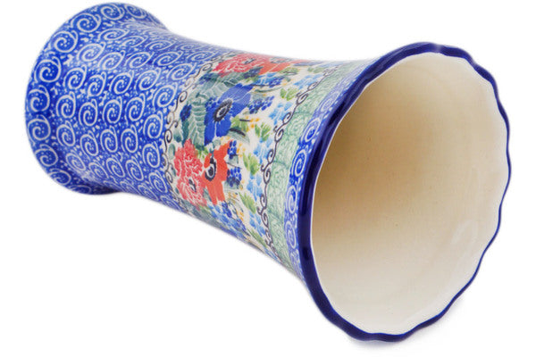 This is a Polish pottery Unikat (Signature) Vase, which means that it has been hand painted with both sponges and brushes and it is signed by the artist who painted it. Unikat pieces are the most intricate works of art. Larger Unikat items take hours of very careful work to finish.