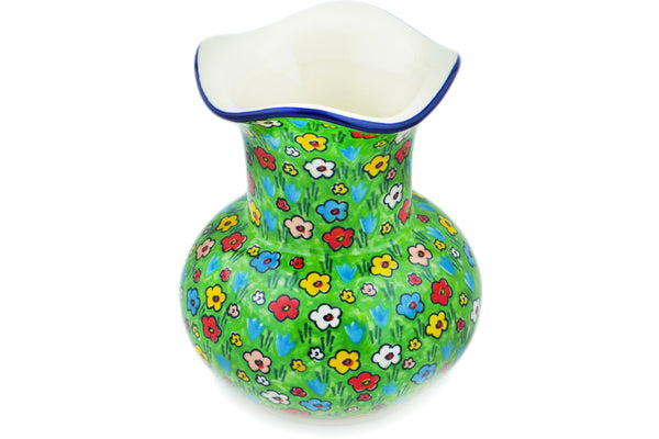 This Polish pottery Vase is made by Ceramika Artystyczna workshop in Boleslawiec, Poland. Manufacturer item number H5350L. It is 6¾" high and measures 6" by 6". The weight of this Vase is 2.0 lbs. It is part of the Whimsical Garden Collection.