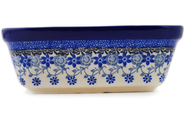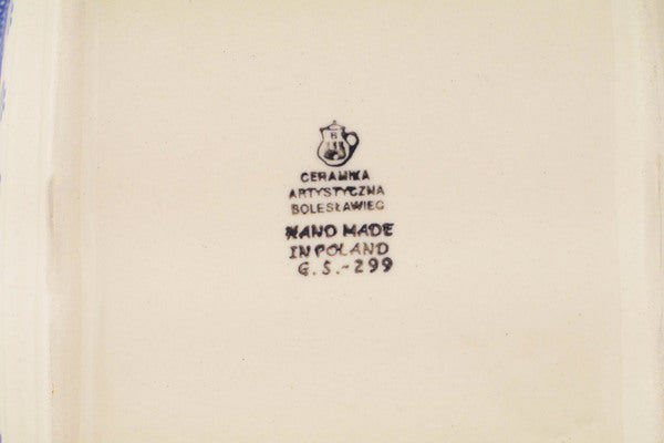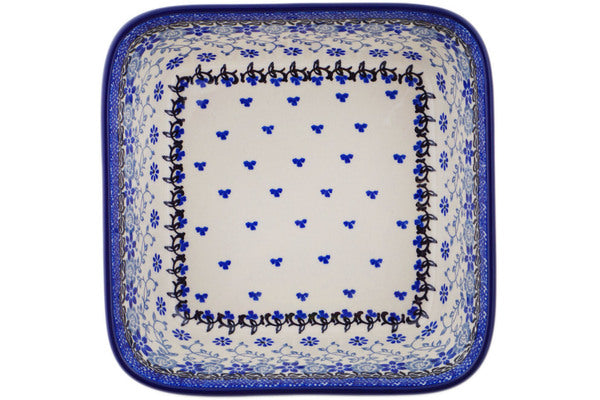 This Polish pottery Bowl is made by Ceramika Artystyczna workshop in Boleslawiec, Poland. Manufacturer item number H5997Q. It is 2¾" high and measures 8" by 8". The capacity of this Bowl is 51.1 oz when filled to rim and it weighs 2.2 lbs. It is part of the First Snow Collection.