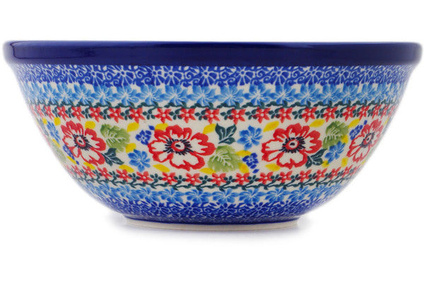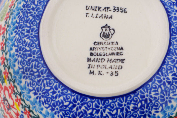 This Polish pottery Bowl is made by Ceramika Artystyczna workshop in Boleslawiec, Poland. Manufacturer item number H6727Q. It is 3½" high and measures 7¾" by 7¾". The capacity of this Bowl is 33.8 oz when filled to rim and it weighs 1.7 lbs. The pattern was designed by artist Teresa Liana. It is part of the Hummingbird Meadow Collection.