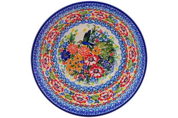 Polish Pottery 8" Bowl Hummingbird Meadow UNIKAT
