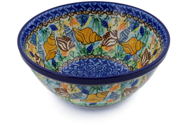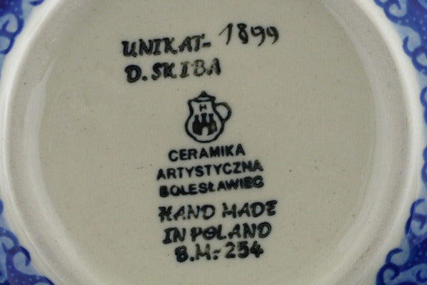 This Polish pottery Bowl is made by Ceramika Artystyczna workshop in Boleslawiec, Poland. Manufacturer item number H4025B. It is 3½" high and measures 7¾" by 7¾". The capacity of this Bowl is 33.8 oz when filled to rim and it weighs 1.7 lbs. The pattern was designed by artist Danuta Skiba. It is part of the Ocean Whisper Collection.