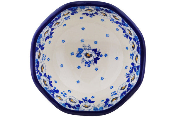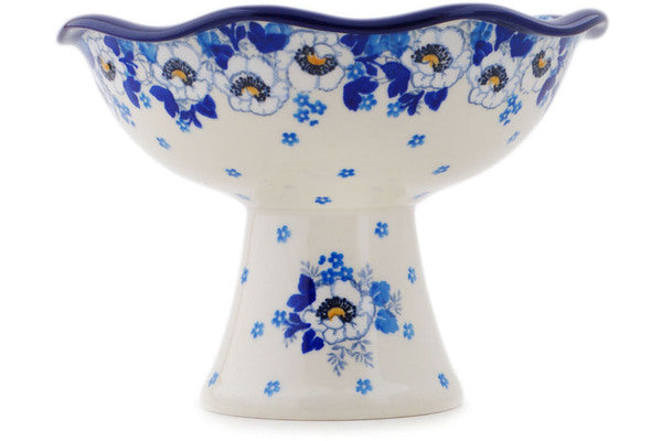 Polish Pottery 8" Bowl with Pedestal Blue Spring