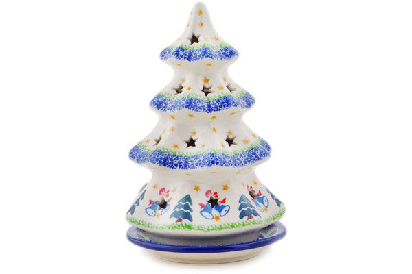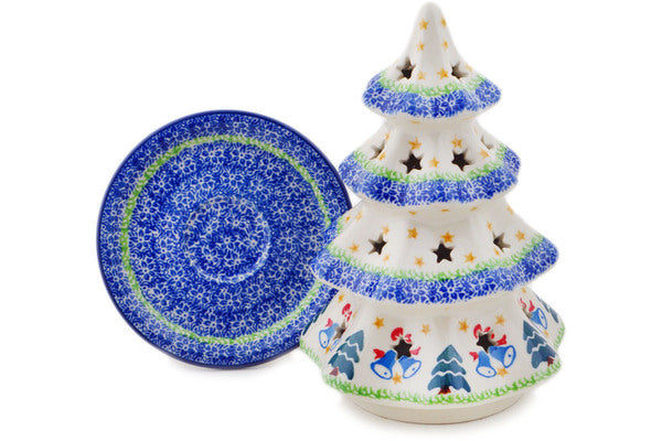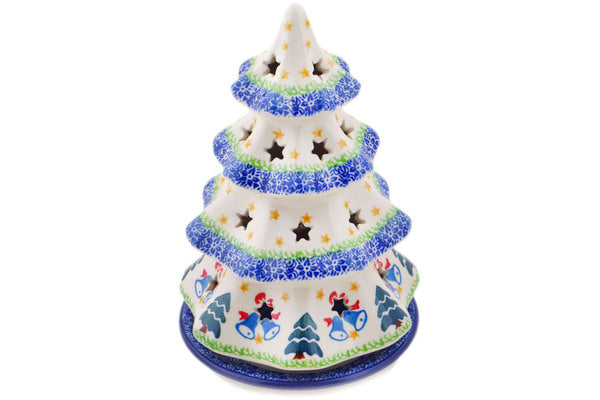 Polish Pottery 8" Christmas Tree Candle Holder Christmas Bells Ring