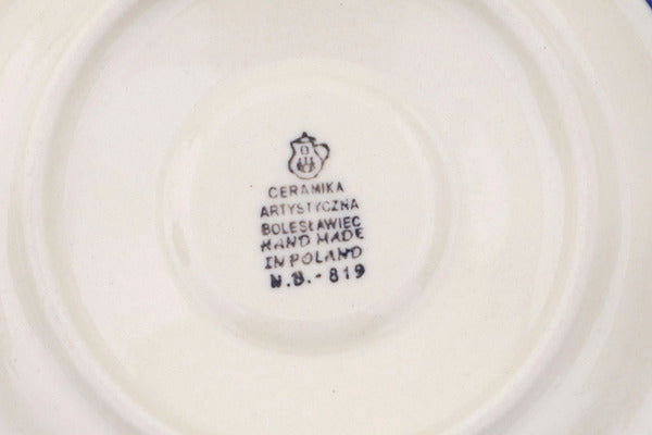 This Polish pottery Christmas Tree Candle Holder is made by Ceramika Artystyczna workshop in Boleslawiec, Poland. Manufacturer item number H5125Q. It is 8¼" high and measures 5" by 5". The weight of this Christmas Tree Candle Holder is 1.4 lbs. The pattern was designed by artist Wirginia Cebrowska. It is part of the Christmas Bells Ring Collection.