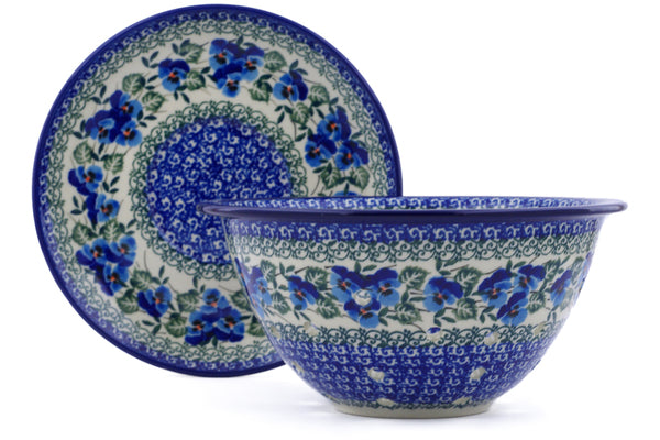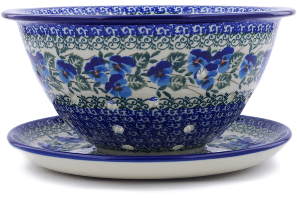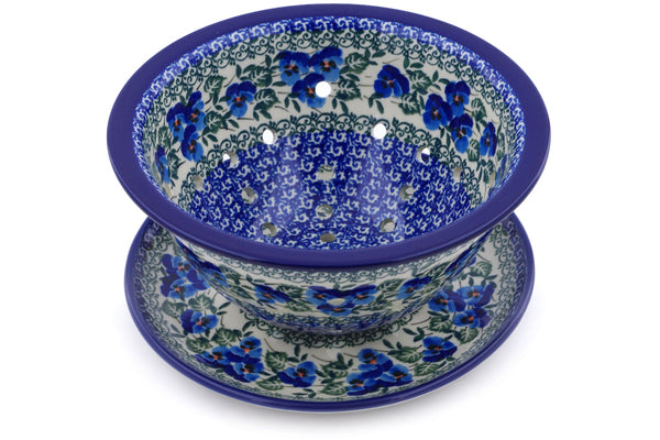 Polish Pottery 8" Colander with Plate Blue Pansy