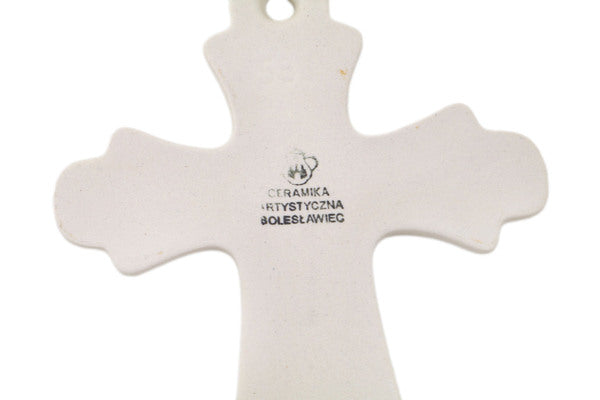 This Polish pottery Cross is made by Ceramika Artystyczna workshop in Boleslawiec, Poland. Manufacturer item number H6368A. It is ½" high and measures 7¾" by 5". The weight of this Cross is 0.5 lbs. The pattern was designed by artist Krystyna Deptuła. It is part of the Yellow Daisy Swirls Collection.