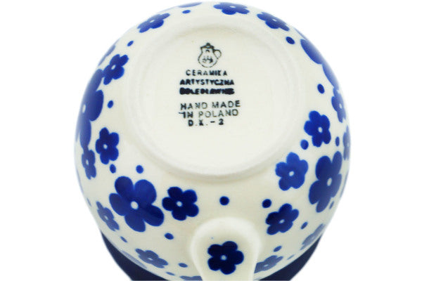 This Polish pottery Bubble Mug is made by Ceramika Artystyczna workshop in Boleslawiec, Poland. Manufacturer item number H1509N. It is 3¼" high and measures 4¼" by 3¼". The capacity of this Bubble Mug is 8.0 oz when filled to rim and it weighs 0.5 lbs. It is part of the Cobalt Meadow Collection.