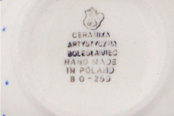 This Polish pottery Bubble Mug is made by Ceramika Artystyczna workshop in Boleslawiec, Poland. Manufacturer item number H9198Q. It is 3¼" high and measures 4¼" by 3¼". The capacity of this Bubble Mug is 8.0 oz when filled to rim and it weighs 0.5 lbs. It is part of the Hatched Collection.