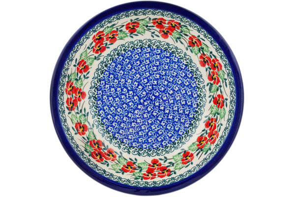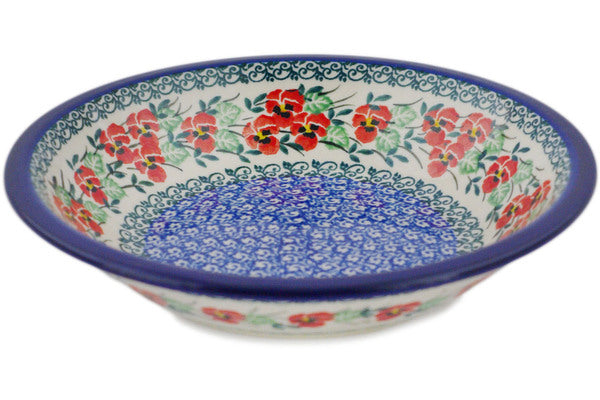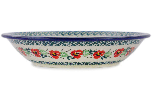 Polish Pottery 8" Pasta Bowl Red Pansy