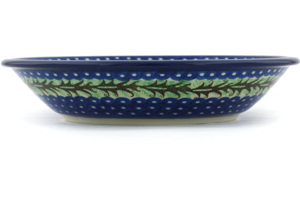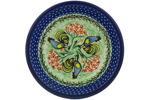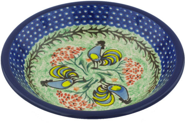 This Polish pottery Pasta Bowl is made by Ceramika Artystyczna workshop in Boleslawiec, Poland. Manufacturer item number H9001G. It is 1¾" high and measures 8¼" by 8¼". The capacity of this Pasta Bowl is 22.5 oz when filled to rim and it weighs 1.2 lbs. The pattern was designed by artist Monika Kuczyńska. It is part of the Rooster Dance Collection.