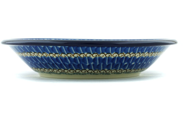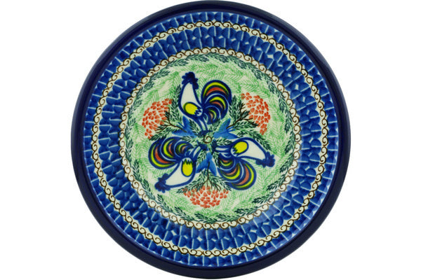 This Polish pottery Pasta Bowl is made by Ceramika Artystyczna workshop in Boleslawiec, Poland. Manufacturer item number H4300H. It is 1¾" high and measures 8¼" by 8¼". The capacity of this Pasta Bowl is 22.5 oz when filled to rim and it weighs 1.2 lbs. The pattern was designed by artist Monika Kuczyńska. It is part of the Summer Rooster Collection.