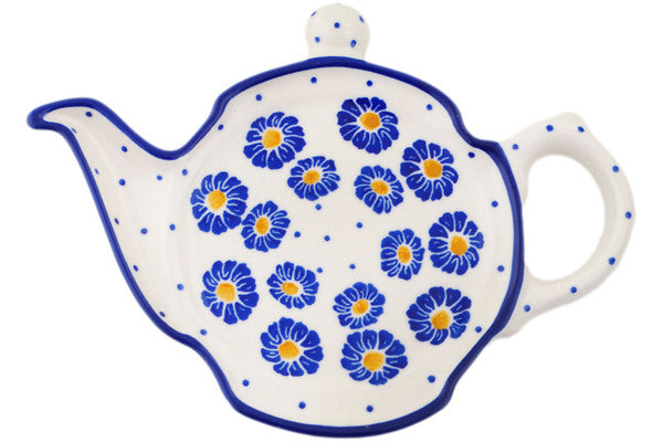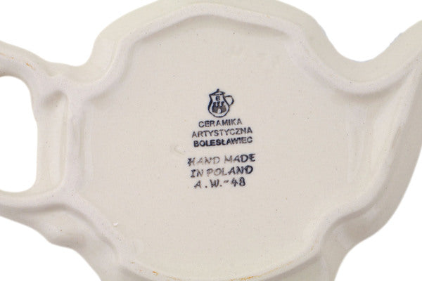 This Polish pottery Plate is made by Ceramika Artystyczna workshop in Boleslawiec, Poland. Manufacturer item number H8643Q. It is ½" high and measures 8¼" by 6". The weight of this Plate is 0.6 lbs. The pattern was designed by artist Wirginia Cebrowska. It is part of the Blue Zinnia Collection.
