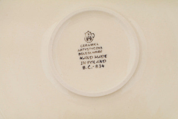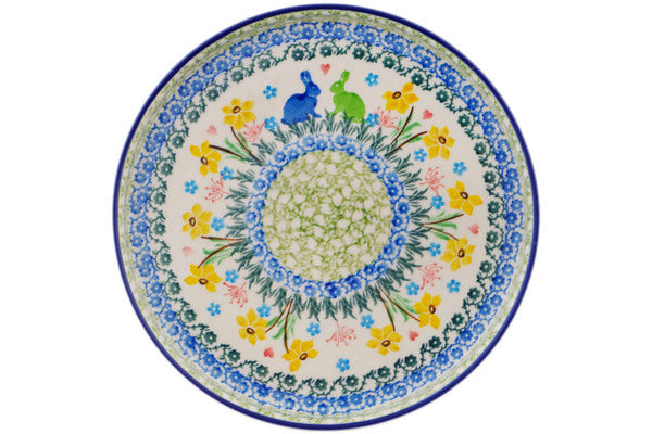 This Polish pottery Platter is made by Ceramika Artystyczna workshop in Boleslawiec, Poland. Manufacturer item number H9037Q. It is ¾" high and measures 8" by 8". The weight of this Platter is 1.4 lbs. It is part of the Hopping In Love Collection.