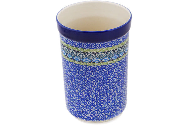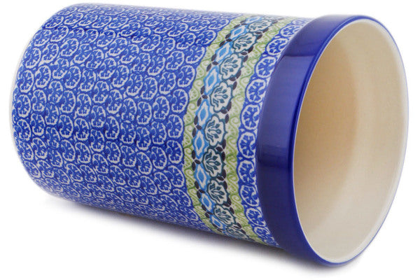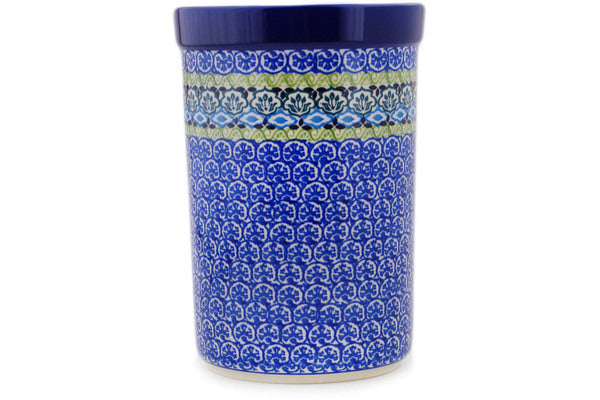 This Polish pottery Utensil Jar is made by Ceramika Artystyczna workshop in Boleslawiec, Poland. Manufacturer item number H5687Q. It is 7¾" high and measures 5¼" by 5¼". The capacity of this Utensil Jar is 50.7 oz when filled to rim and it weighs 3.3 lbs. The pattern was designed by artist Maria Starzyk. It is part of the Artistic Boho Collection.