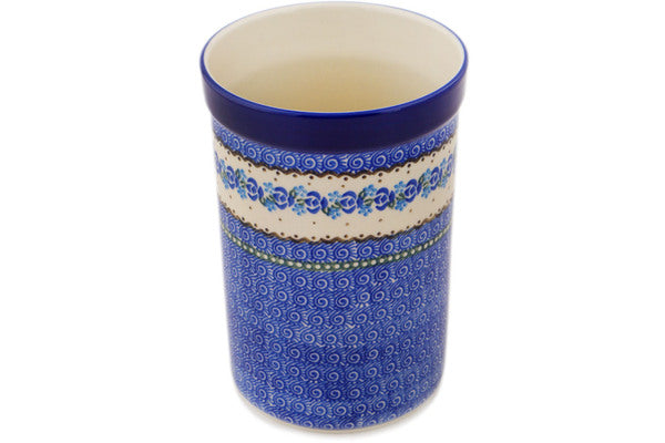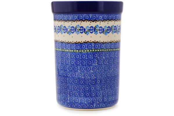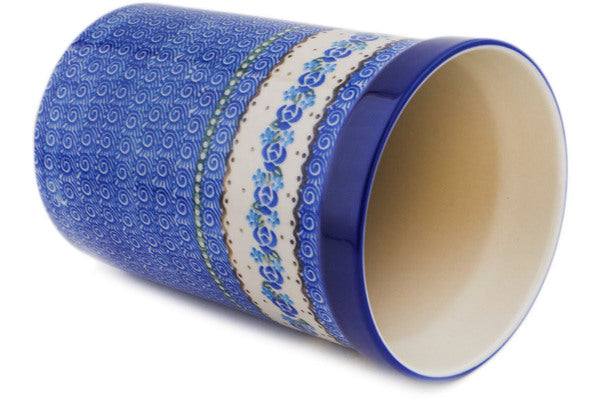 Polish Pottery 8" Utensil Jar Blue Bud Sea