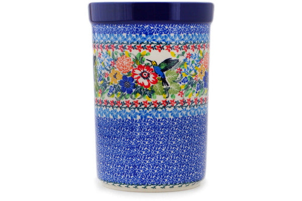 Polish Pottery 8" Utensil Jar Hummingbird Meadow UNIKAT