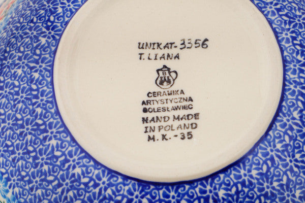 This is a Polish pottery Unikat (Signature) Bowl, which means that it has been hand painted with both sponges and brushes and it is signed by the artist who painted it. Unikat pieces are the most intricate works of art. Larger Unikat items take hours of very careful work to finish.