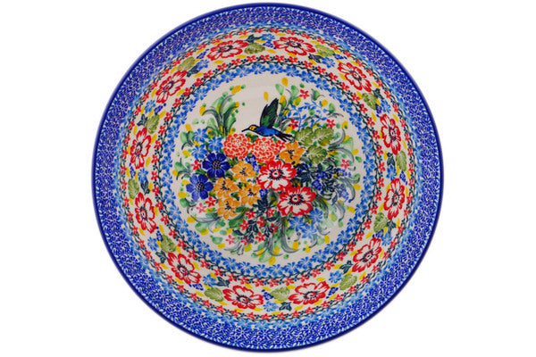 Polish Pottery 9" Bowl Hummingbird Meadow UNIKAT